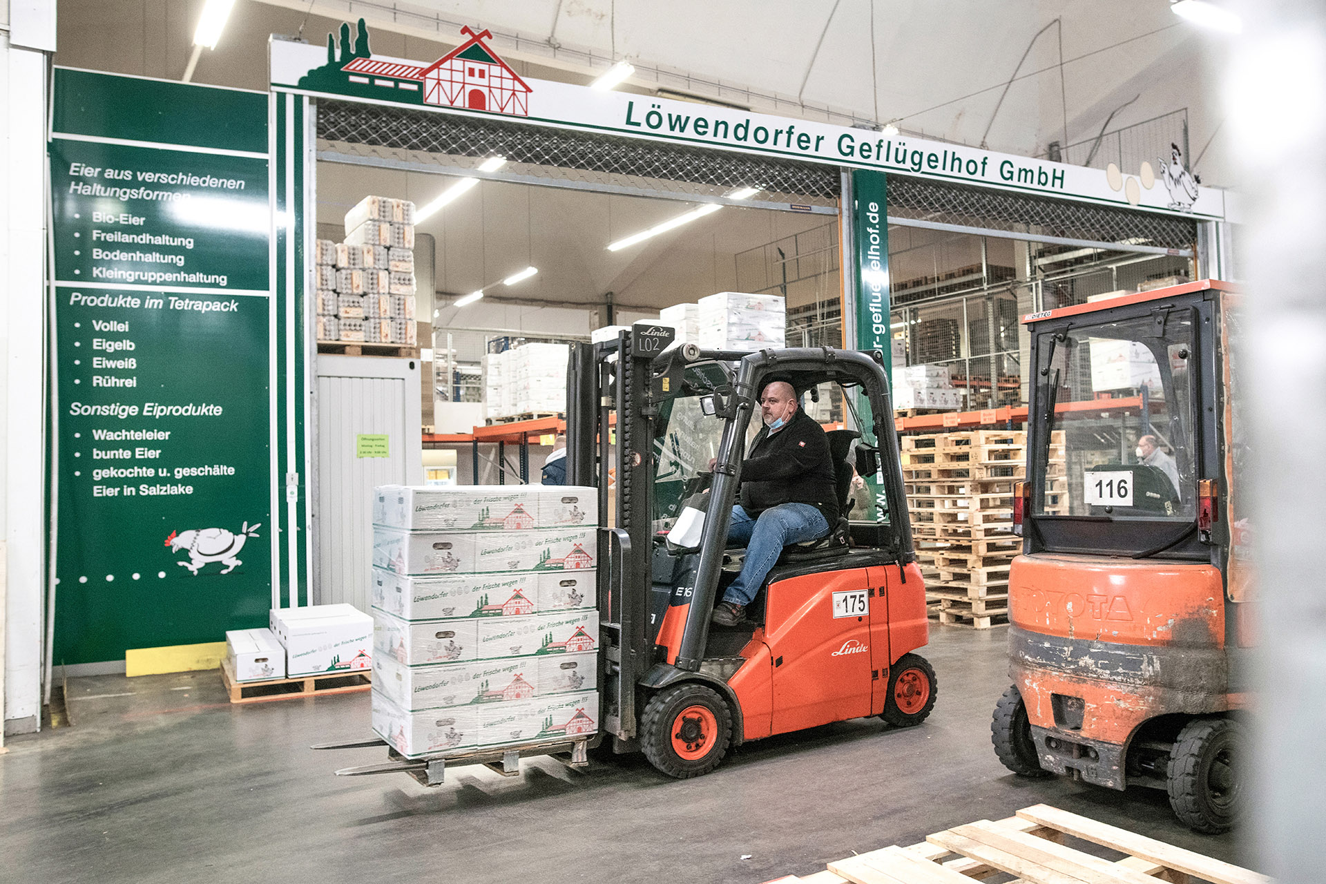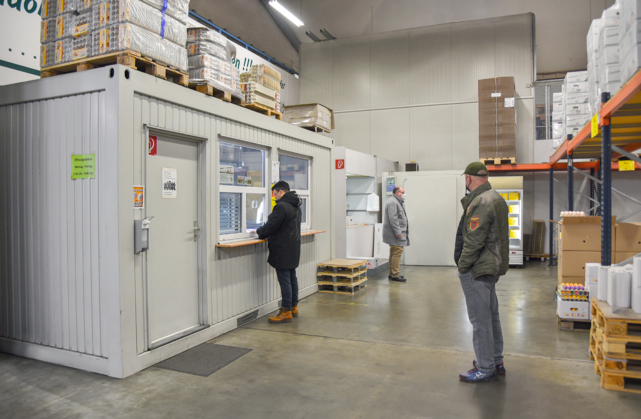 Dort werden von 3 Mitarbeitern unseres Unternehmens jeden Wochentag von 2:30 Uhr morgens bis 9:00 Uhr am Vormittag unsere Produkte an Markt- und Einzelhändler, Gastronomie und Wiederverkäufer verkauft. Mittlerweile werden dort mehr als 1.000.000 Eier im Monat umgesetzt.
